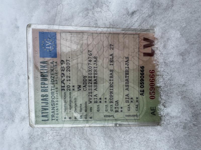 kustamo mantu – automašīnu VW CADDY, reģistrācijas Nr. HA989, Izlaiduma datums: