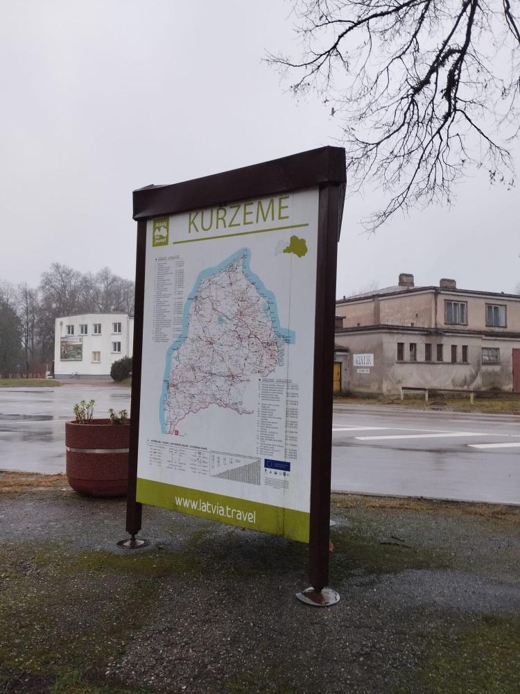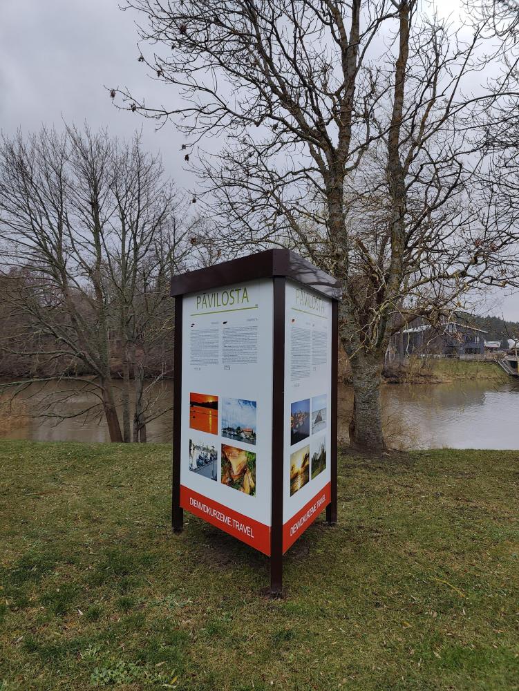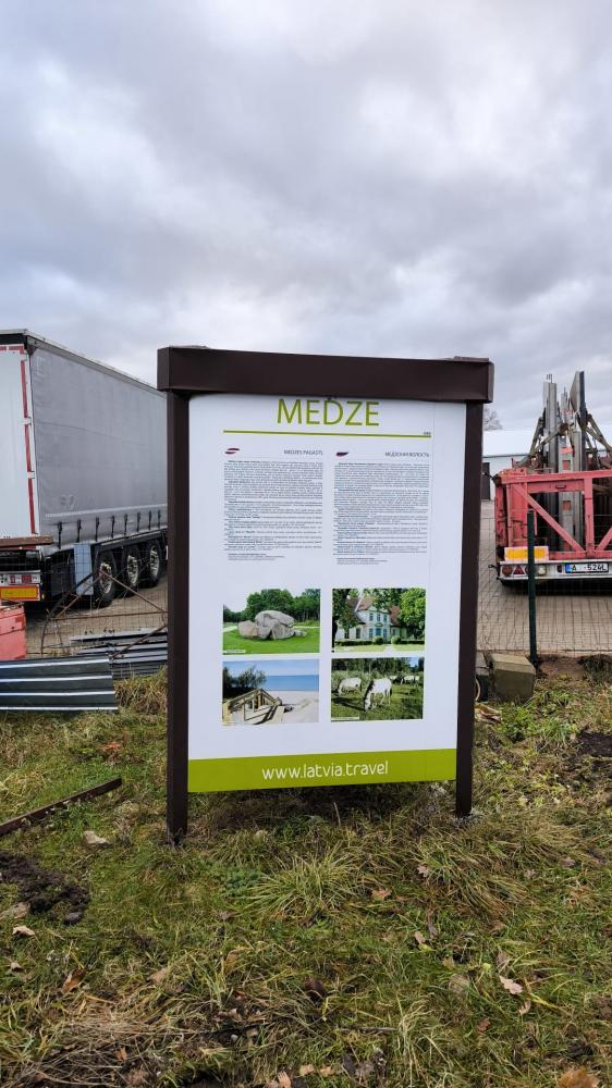 Vērtējamie tūrisma informācijas stendi izgatavoti 2006. gadā SIA “SIGNUM” un uzstādīti iepriekš minētajās vietās ar tobrīd aktuālo tūrisma informāciju. Stenda rāmis ir trīspusīgs, izgatavots no 2 mm karsti cinkota tērauda taisnstūra profila, kas krāsots ar pulverkrāsu. Stenda pamatnē ir trīs regulējamas atbalsta pēdas, kas ļauj noregulēt stendu vertikālā stāvoklī atbilstoši novietojuma virsmas reljefam. Stenda iekšpusē trijstūra veidā piemetinātas cinkota skārda izliektas loksnes – stiprības nodrošināšanai. Stends ir bez apgaismojuma.