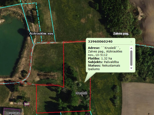 Aizkraukles novada pašvaldība elektronisko izsoļu vietnē ar augšupejošu soli pārdod pašvaldības īpašumu “Krusieši”, Zalves pagasts, Aizkraukles novads ar kadastra Nr. 32960060240, kas sastāv no zemes vienības ar kadastra apzīmējumu 32920060240 - 1.32 ha platībā.