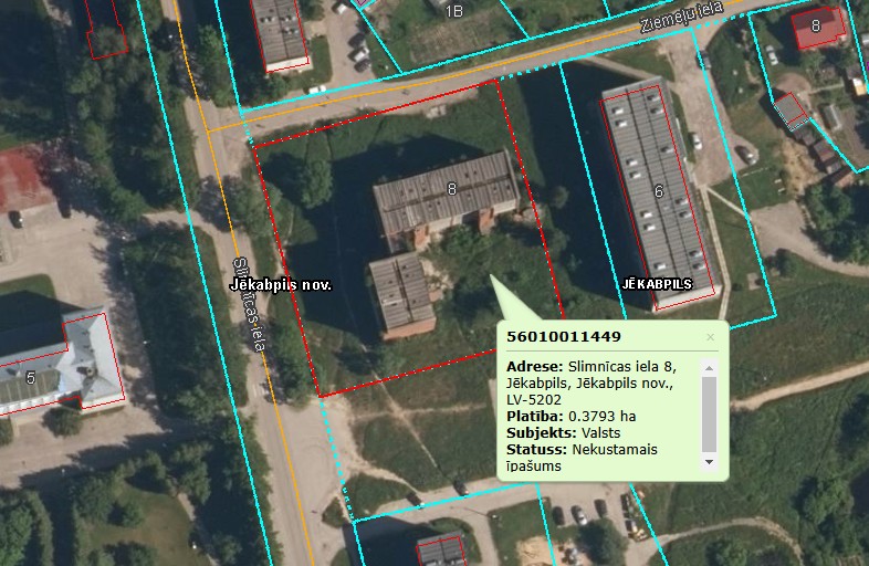 Slimnīcas ielā 8, Jēkabpilī, Jēkabpils novadā (kadastra numurs 5601 001 1449), kas sastāv no zemes vienības 3793 m² platībā (zemes vienības kadastra apzīmējums 5601 001 1449). Izsoles sākumcena EUR 31250. Izsoles solis - EUR 200.