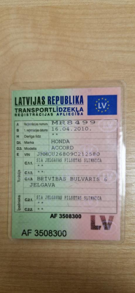SIA "JELGAVAS PILSĒTAS SLIMNĪCA" rīko elektronisko izsoli kustamai mantai – automašīnai HONDA ACCORD, valsts reģistrācijas numura zīme MR 8499.