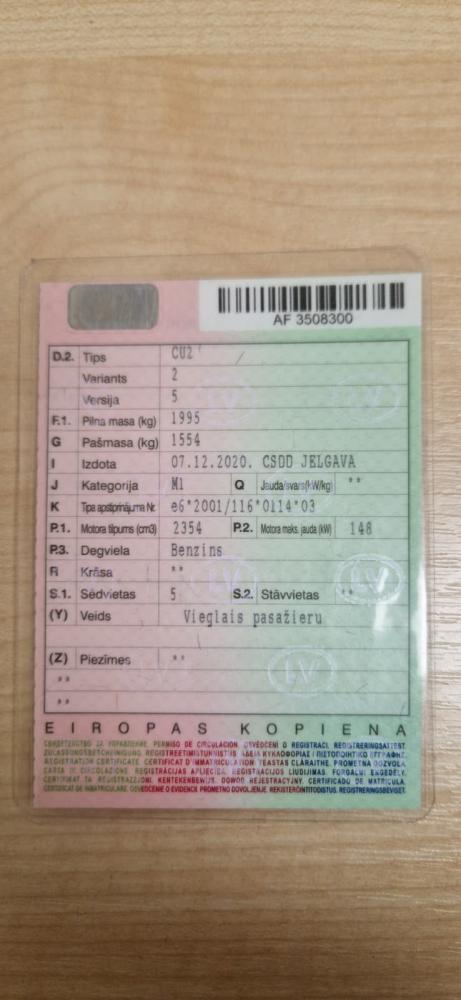 reģistrācijas apliecības Nr. – AF 3508300;