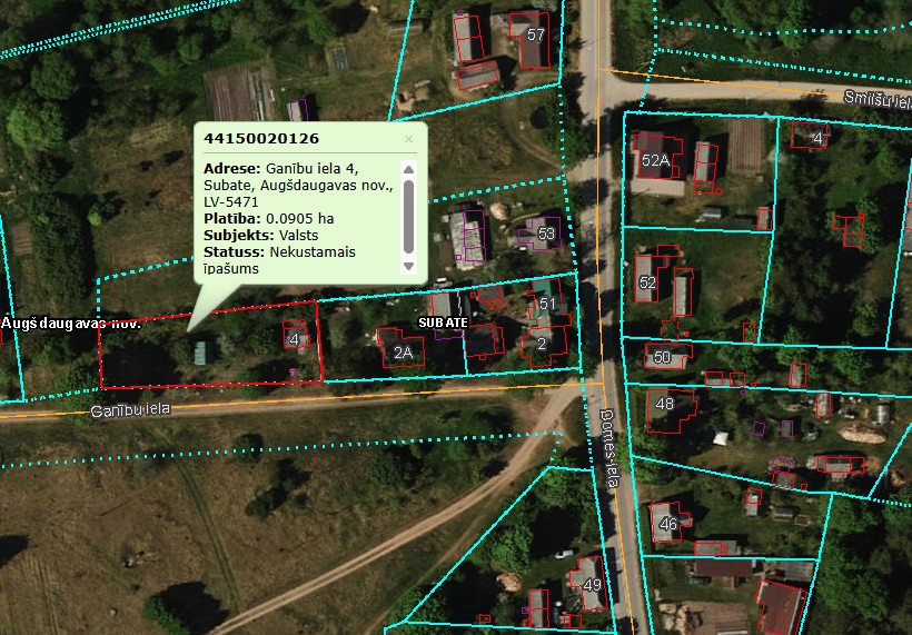 Ganību ielā 4, Subatē, Augšdaugavas novadā (kadastra numurs 4415 002 0126), kas sastāv no zemes vienības 905 m² platībā (zemes vienības kadastra apzīmējums 4415 002 0126) un divām būvēm (būvju kadastra apzīmējumi 4415 002 0126 007 un 4415 002 0126 008), kopā ar būvi (būves kadastra apzīmējums 4415 002 0126 009), kas nav reģistrēta zemesgrāmatā. Izsoles sākumcena EUR 1100. Izsoles solis - EUR 20.