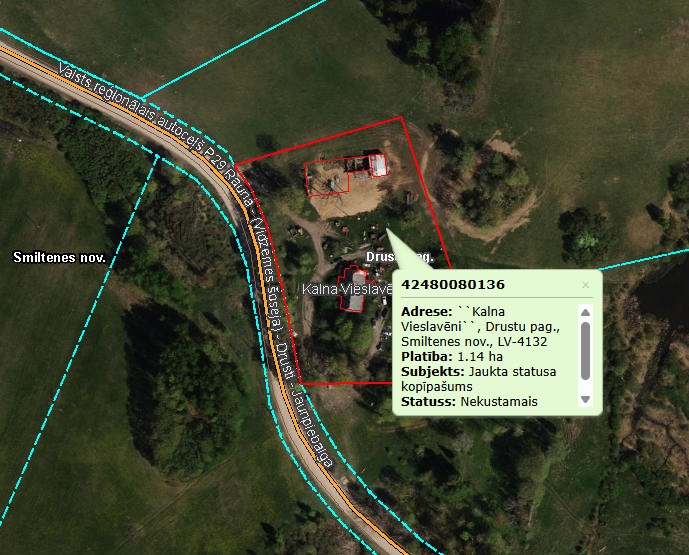 “Kalna Vieslavēni 1”, Drustu pagastā, Smiltenes novadā (kadastra numurs 4248 508 0003), 1/6 domājamo daļu no trīs būvēm (būvju kadastra apzīmējumi 4248 008 0136 001, 4248 008 0136 002 un 4248 008 0136 003), kopā ar 1/6 domājamo daļu no zemes vienības 1,14 ha platībā (zemes vienības kadastra apzīmējums 4248 008 0136) “Kalna Vieslavēni”, Drustu pagastā, Smiltenes novadā (kadastra numurs 4248 008 0013). Izsoles sākumcena EUR 2600. Izsoles solis - EUR 50.