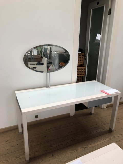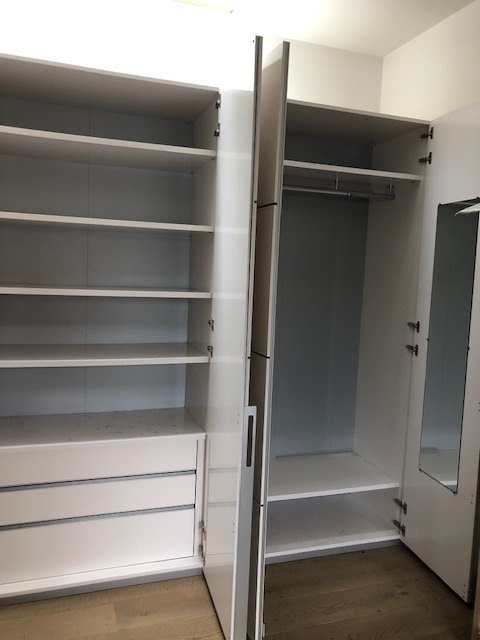 Franču mēbeļu zīmola Ligne Roset guļamistabas iekārta Lumeo (matēti balts lakojums), kurā ietilpst gulta, divi sānu galdiņi, galds ar spoguli, drēbju skapis, kā arī Lulla krēsls (balts).