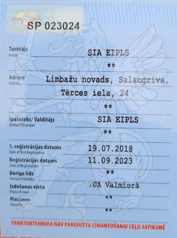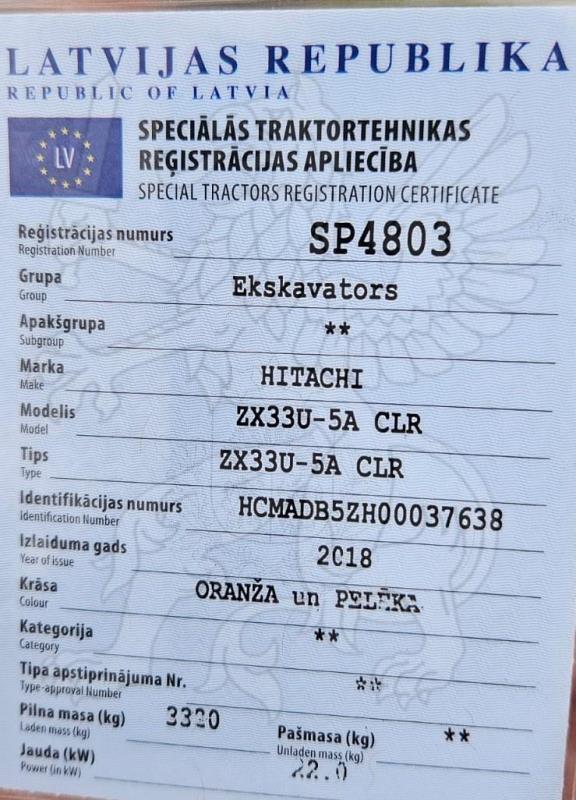 Vidzemes apgabaltiesas iecirkņa Nr.92 zvērināta tiesu izpildītāja Līga Krima, prakses vieta Cēsu iela 22, Limbaži, Limbažu novads, LV-4001, otrajā izsolē pārdod SIA EIPLS, reģ. Nr.44103075349, juridiskā adrese Tērces iela 24, Salacgrīva, Limbažu novads, LV-4033, piederošu kustamo mantu: lietots kāpurķēžu mini ekskavators HITACHI ZX33U-5A CLR, valsts numura zīme SP4803, izlaiduma gads 2018, rūpnīcas numurs (šasijas) HCMADB5ZH00037638, krāsa oranža un pelēka, nobraukums 5632,5 h, pēdējā apkope veikta uz 5500 h. Inventārs: planējamais kauss 1,2 m, rakšanas kauss 0,5 m, tranšejas kauss 0,3m.
